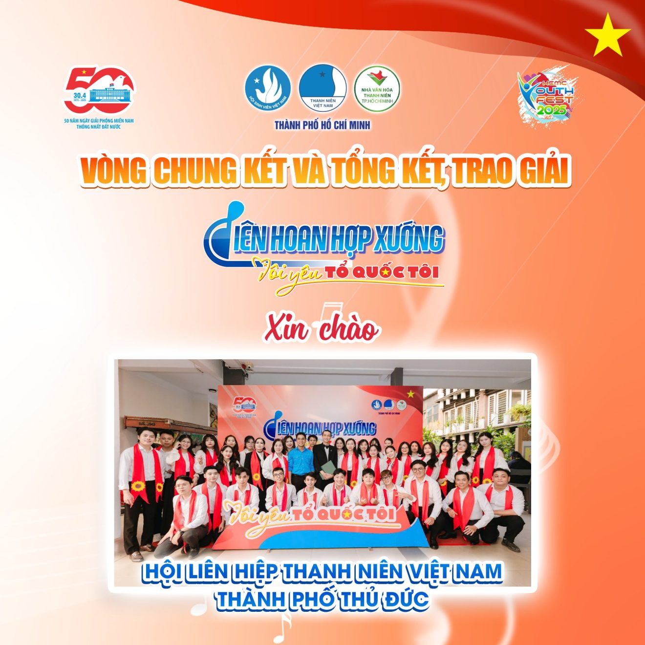 Đội hợp xướng đại diện Hội Liên hiệp Thanh niên Việt Nam TP. Thủ Đức đã tham gia với tinh thần nghiêm túc, đoàn kết và hết mình vì nghệ thuật. Trải qua nhiều tuần tập luyện không ngừng nghỉ, tập thể đội đã thể hiện một phần trình diễn chỉn chu, sáng tạo và tràn đầy cảm xúc trong đêm chung kết.